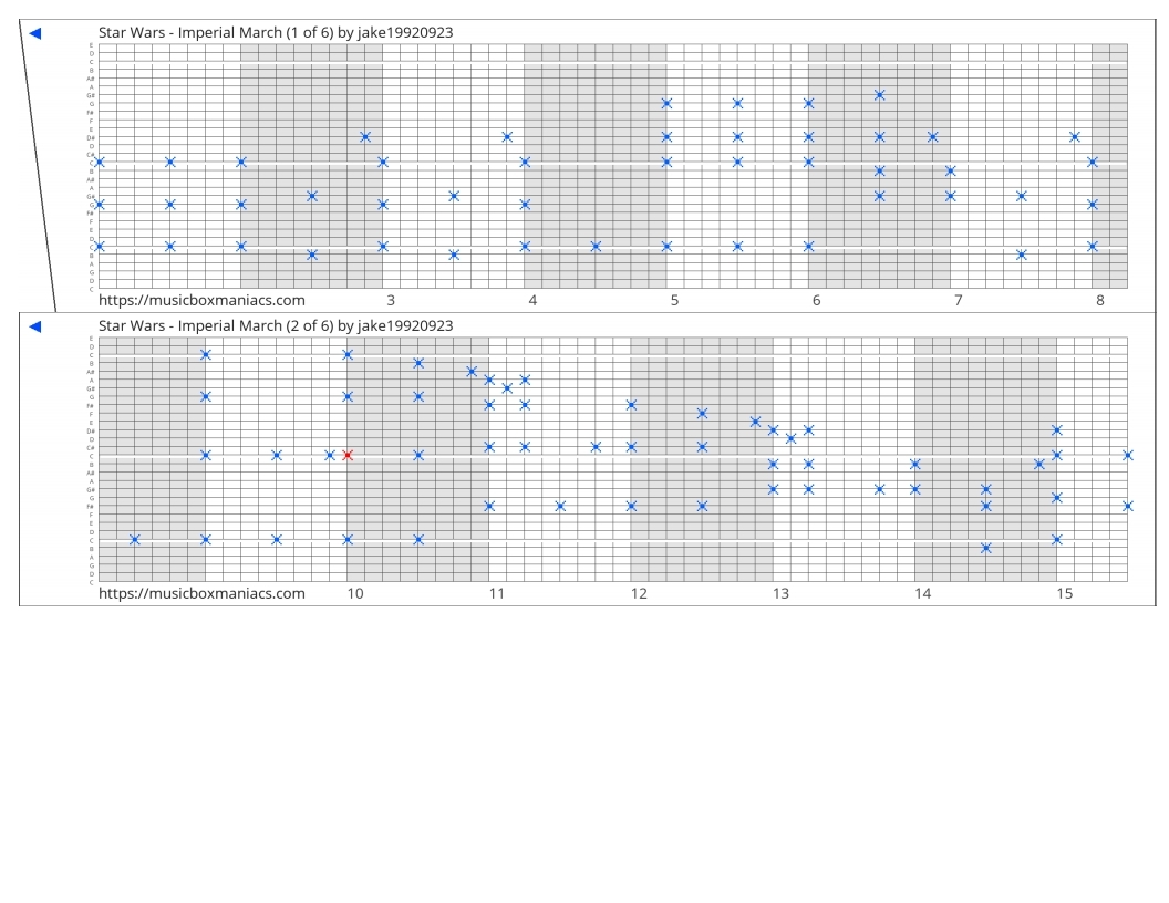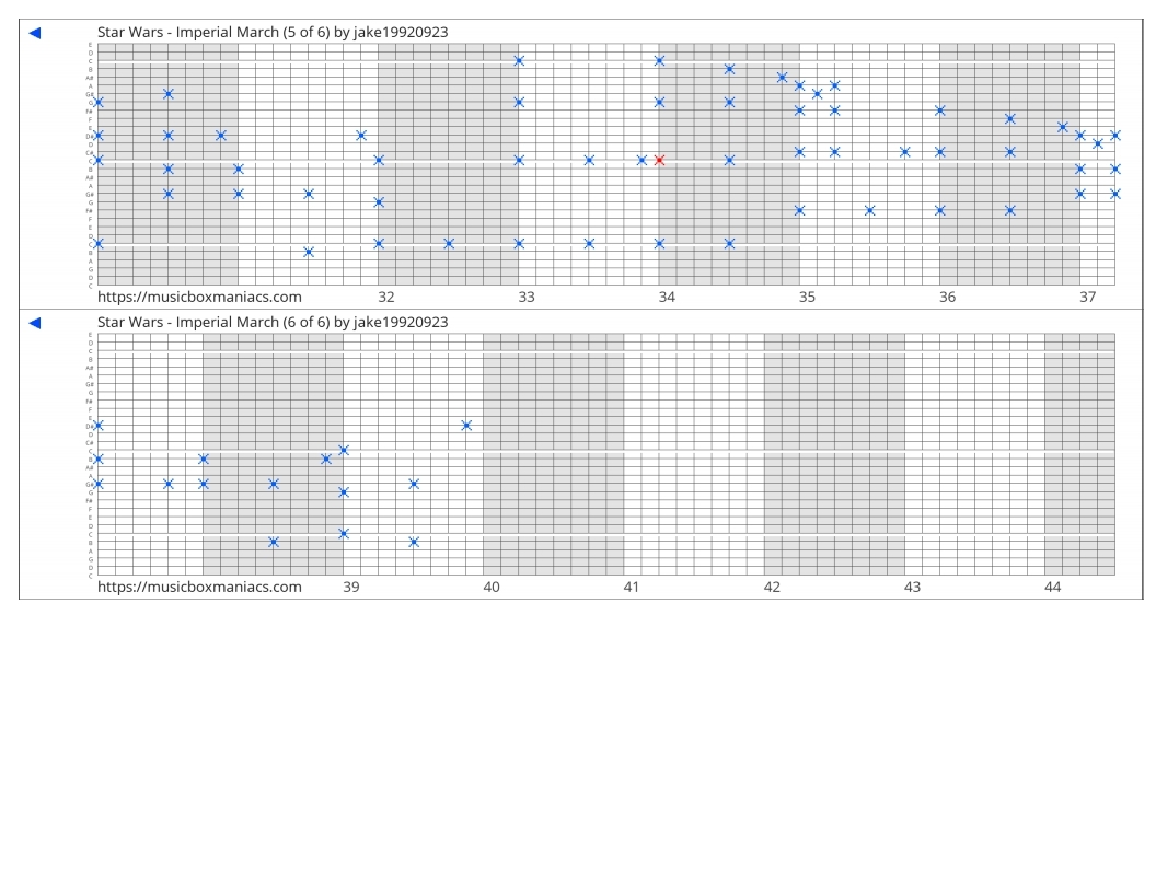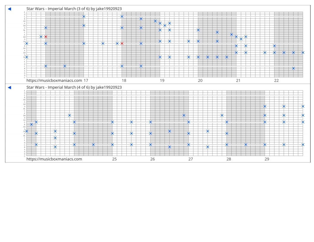 오늘의 오르골로 연주 악보 공유는 스타워즈의 다스베이더 테마 "Star Wars - Imperial March" 입니다.