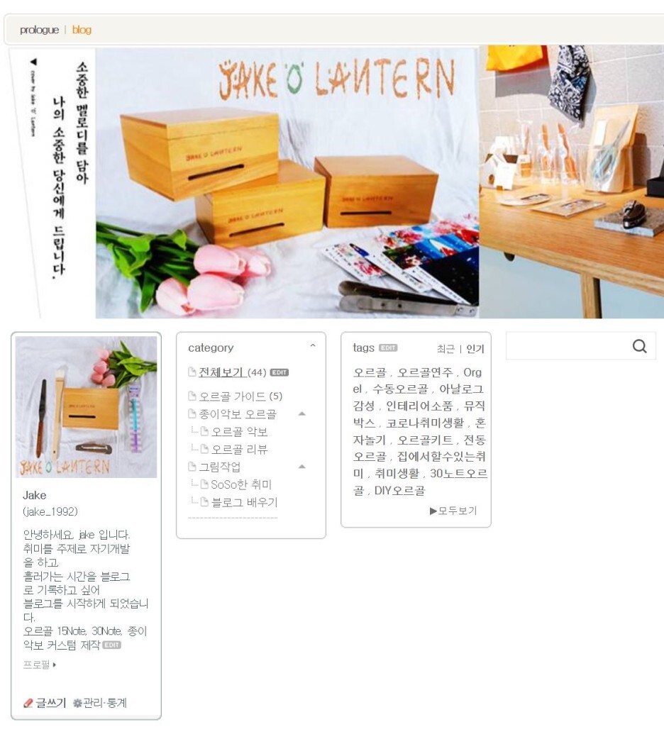 안녕하세요, jake 입니다. 오르골 음악 연주 및 악보만들기 취미를 주제로 자기개발을 하고, 흘러가는 시간을 블로그로 기록하고 싶어 블로그를 시작하게 되었습니다. 오르골 15Note, 30Note, 종이악보 커스텀 제작