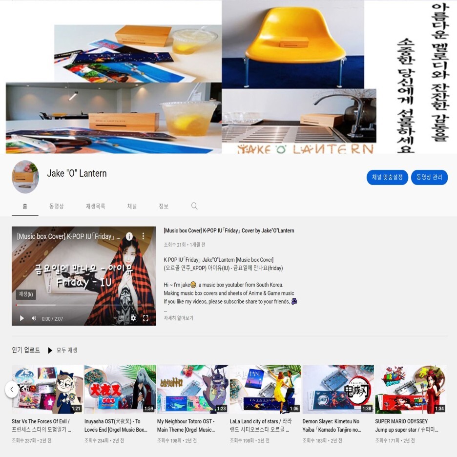 해당 유튜브 채널에서는 카테고리에 오르골 연주 커버가 업로드 됩니다.